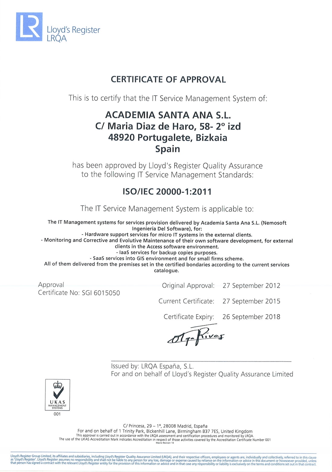 The 2011 version of the standard, ISO 20000-1:2011, was published on April 12, 2011 and there are very few ICT companies that have the 20000-1:2011 certificate (in Spain, less than a hundred in Summer 2012) .